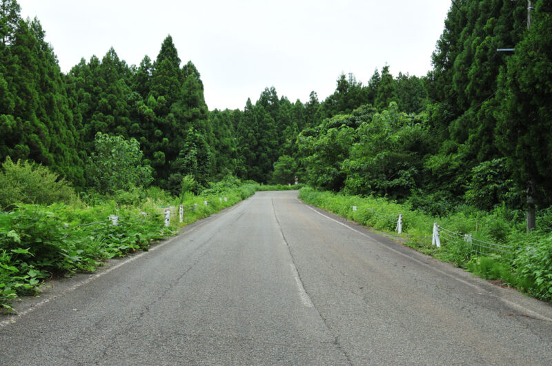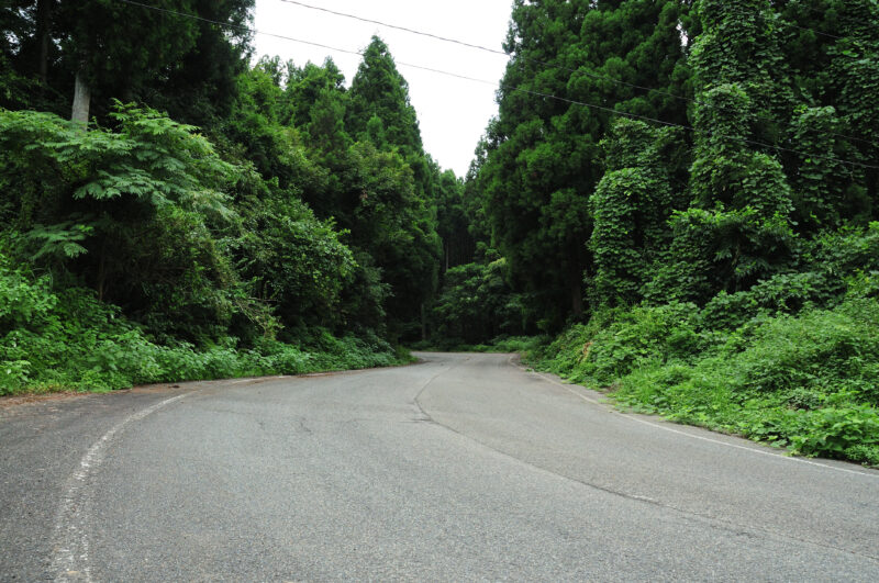 道幅も広く、大型車でも通れそうな道幅。ただ、いかんせん急カーブが多く、そういう面で通行には厳しかっただろう。この周辺の地形が要因の、同じ町であっても海岸部と内陸部に集落が分かれている事情が、こういう道を造る。そう、実はこの道、その海岸部と内陸部を結ぶ大事な道でもあったようだ。だから、今でもこんなに綺麗に管理されているのだろうか。