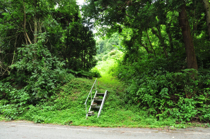 なんだろう?、この階段。…いけない、こんな階段はめちゃくちゃ惹かれてしまう(笑)。増して、階段の先がなんとなく拓けているんじゃないか?。ここはひとつ、この階段を上ってみたい気分でだったが、その先がきちんと草刈りがされているところを見ると、私有地の気がするので、あえて立ち入らなかった。なんで入らなかったんだ?と言う方もいらっしゃるだろうが、どうかご容赦願いたい。あたしゃ不法侵入なんぞで捕縛されたくない。
