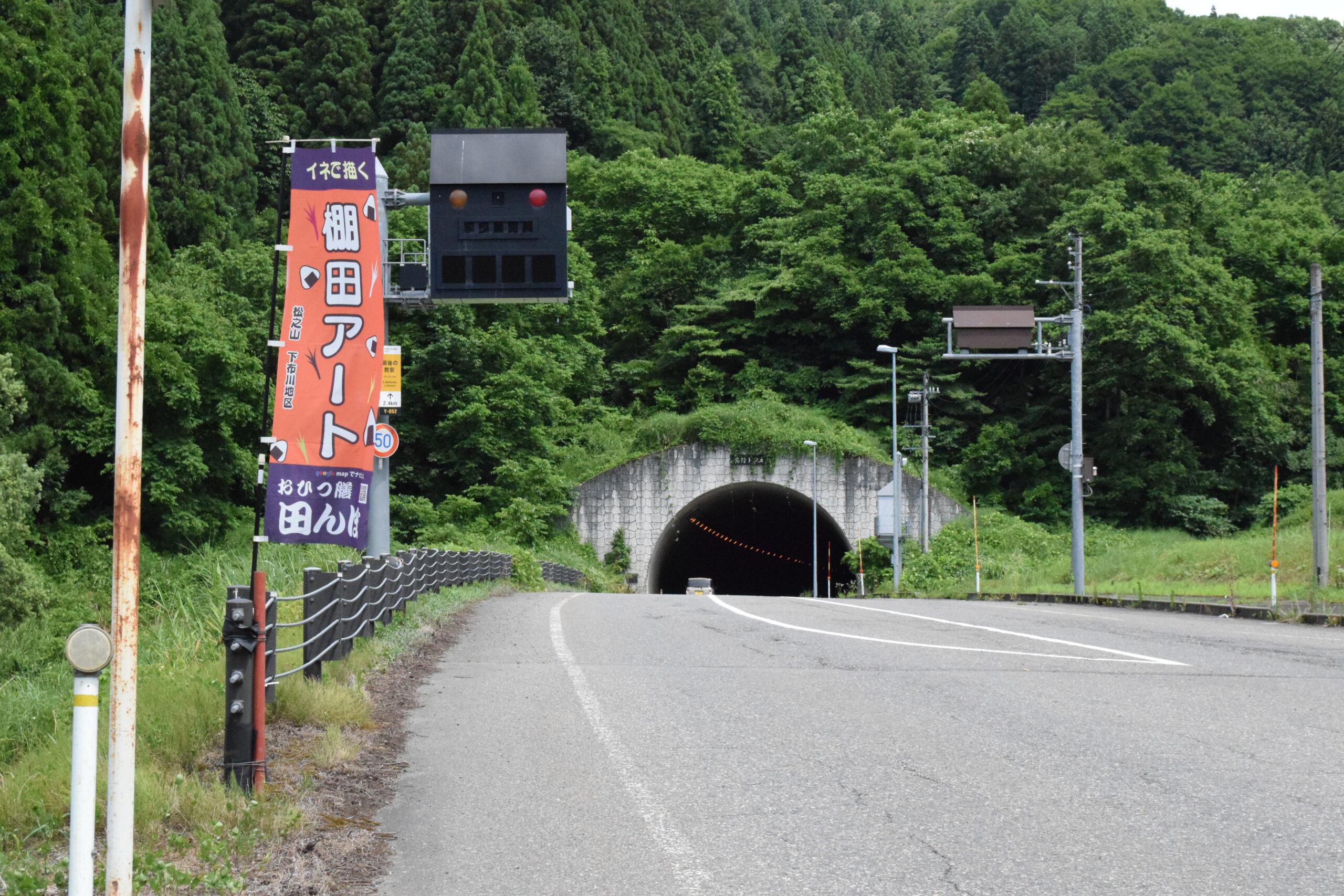 ここは五十子平。ここに来ると、思わず直進してしまいそうだが、県道はここから左に折れる。この前に一度分岐点はあるのだが、そこはなぜか撮影していなかったので、ここは2か所目の分岐になる。この道が本当に険道になるのか?といささか心配になってしまうが、ひとまず先に進んでみよう。ちなみにここを直進すると松之山下蝦池(しもえびいけ)の集落を過ぎて、最初に登場してきた高館トンネルを出たところに合流してしまう。県道でもなくなってしまうので注意が必要だ。