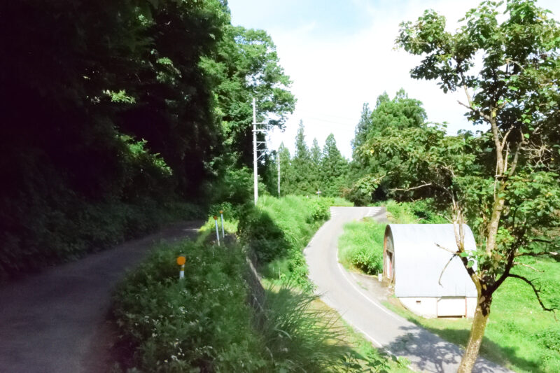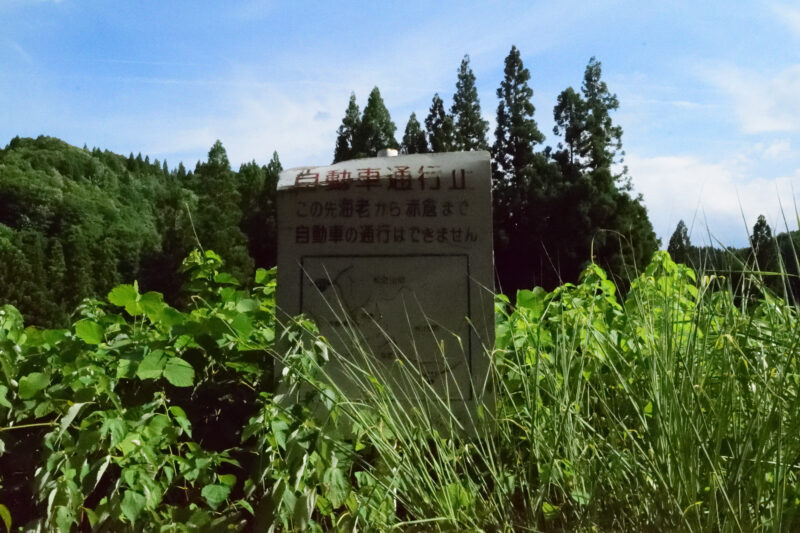ちょいと車を停めてパチリと1枚。峠を越えた海老集落の若者は、戦地に赴く際に何を思ったのか。ここで佇んで一息ついて空を見上げていると、出征したその人たちの気持ちが胸を突く。「必ず戻る」。そう思った人たちもいただろう。この道はなくしちゃいけない。道の整備が少しづつでも進んでいて良かったと思う。地図を見ながらよくよく考えてみると、この道がないと海老や赤倉、坪野の集落は行き来できなくなってしまうことに気付いた。やっぱりこの道は林道などではなく、地域をつなぐ重要な道だったんだな。