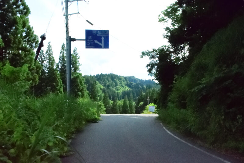 分岐点から少し行ったところで振り返ると、こんな案内板が設置されていた。直進すると県道427号で国道353号の松之山、左に行くと県道528号で鉢・中手集落に出て、信濃川河畔に辿りつく。しかし、表示板に県道標記はない。この看板、県道指定前に設置された看板かなぁ。ちなみに、今、私がいるこの地点は県道427号で指定されている(県道528号の起点は、先ほどの分岐点)。
