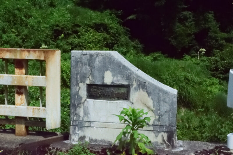 親柱を見てみると、立派な銘板がはめ込んである。そこには「一般県道427号五十子平真田線」と記されてある。この親柱の銘板に、橋が所属する路線名が表示されるのは新潟県特有らしく、山形県や福島県でも探索してレポートしているが、橋の親柱に所属する路線名称が記されていたことは一度もない(逆に私はこの様式に慣れてしまっているので、他の県に出向いた際に橋を見てみると、橋名と竣功年月日が記されてあるだけで路線名称の表示はないので、戸惑った覚えがある)。その親柱は、やや白いものが溢れ出してきており、これは「白華現象(エフロレッセンス)」によるものと思われる。